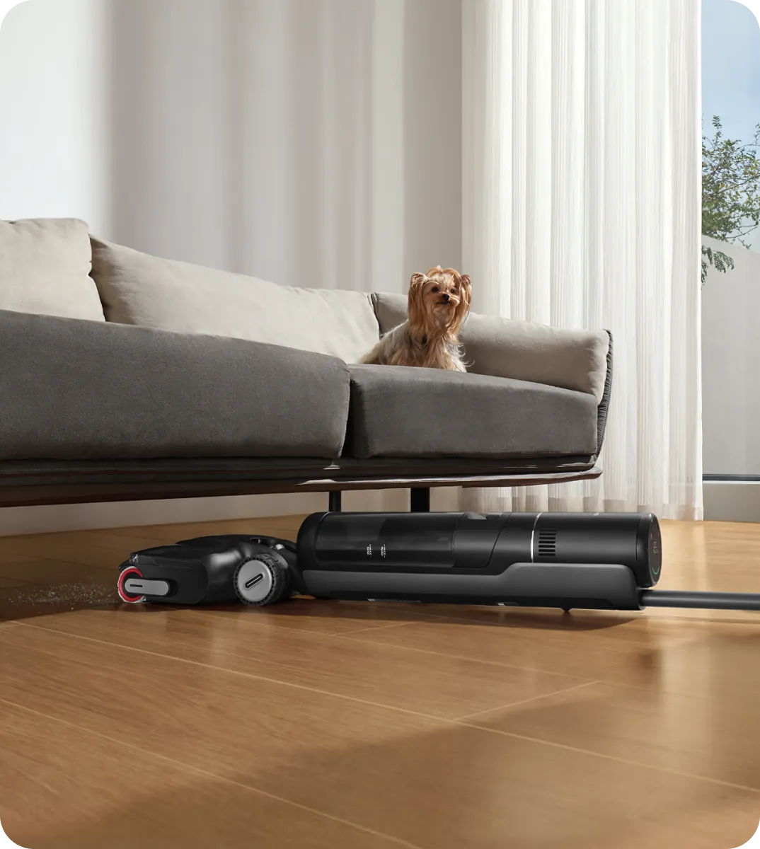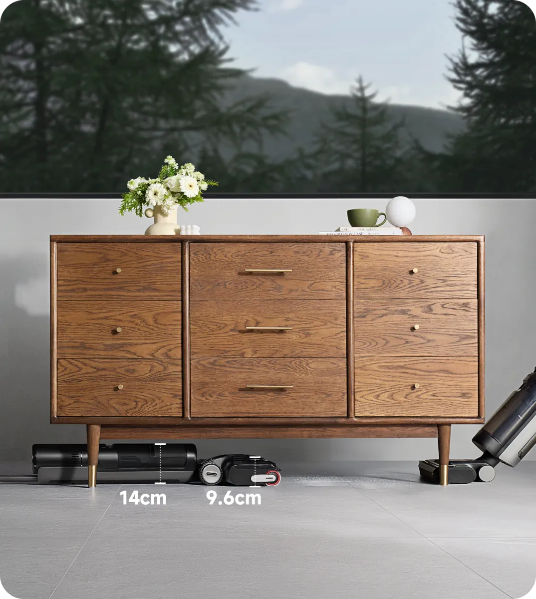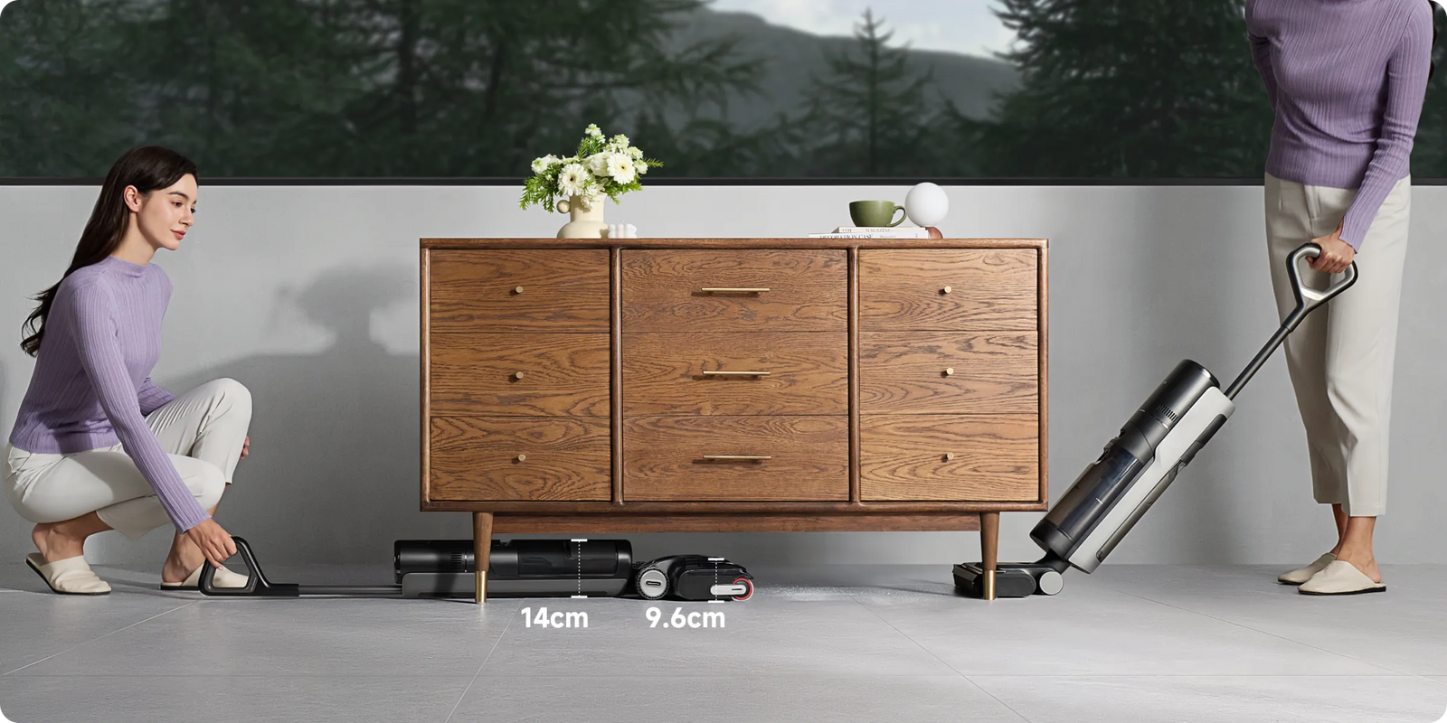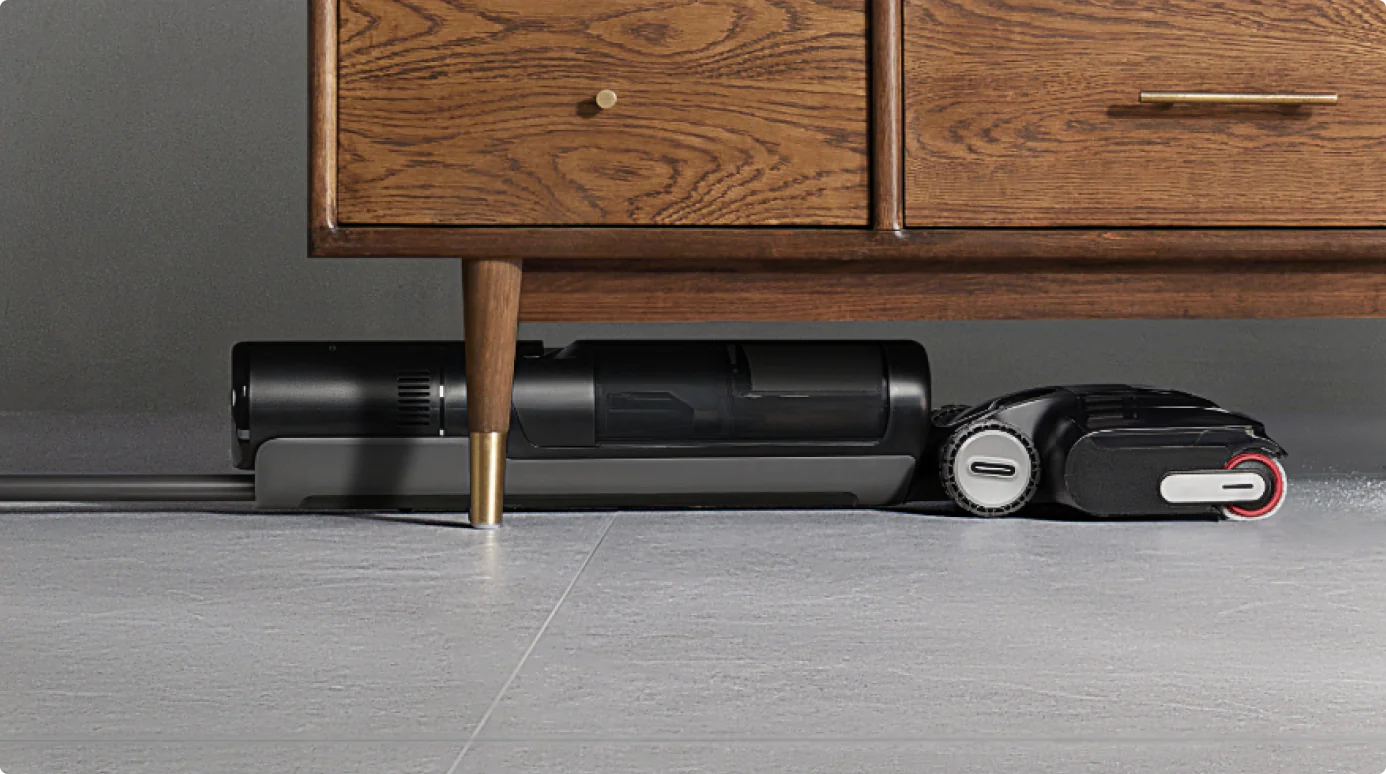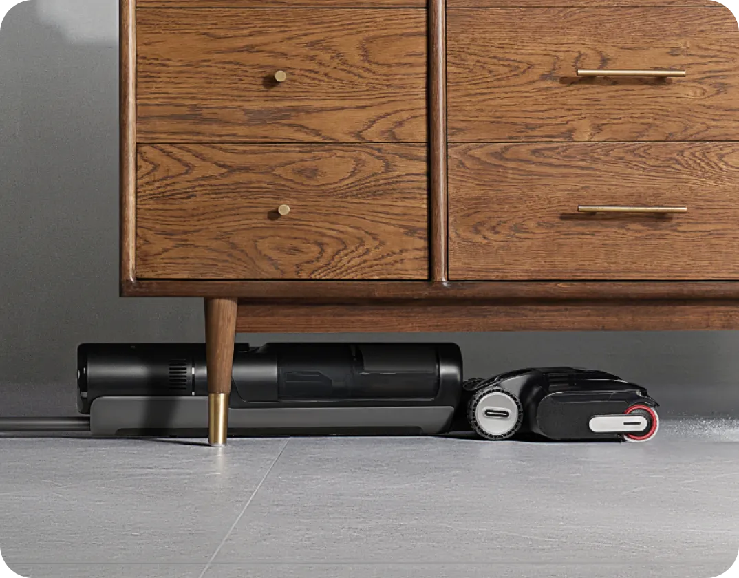 *180°, 14cm, 9.6cm: 진공청소기의 전체 본체는 14cm, 브러시 헤드는 9.6cm의 낮은 공간까지 도달할 수 있습니다. 사내 연구소 데이터를 기준으로 합니다.