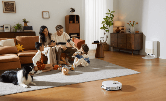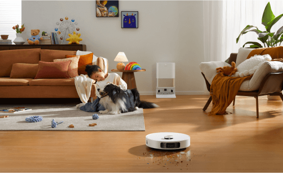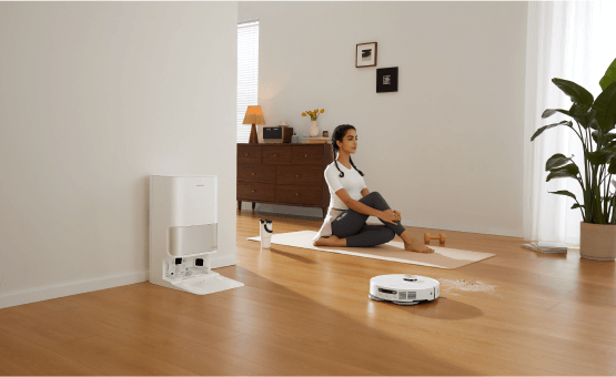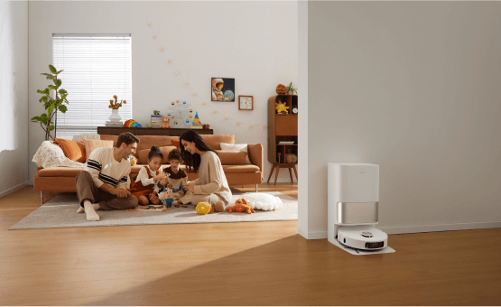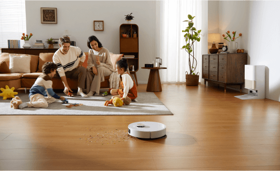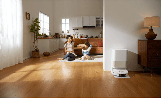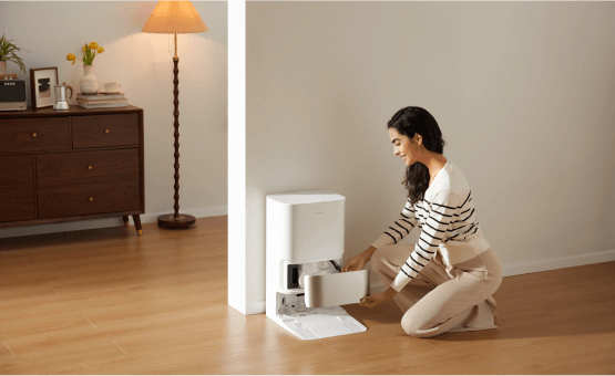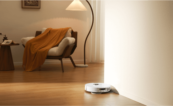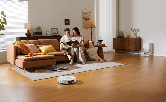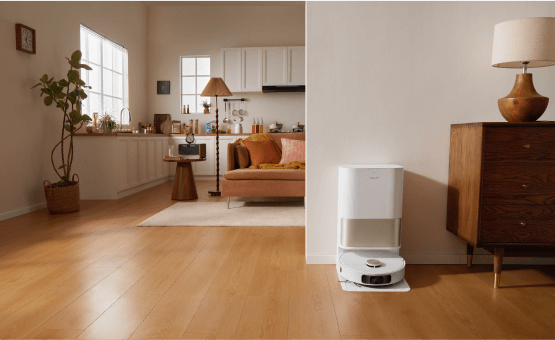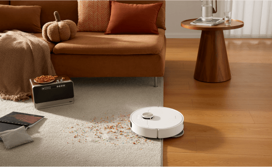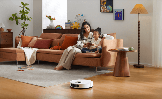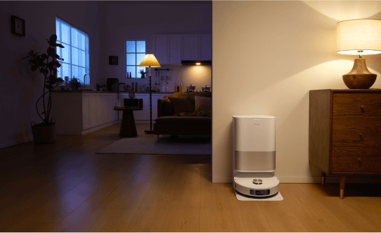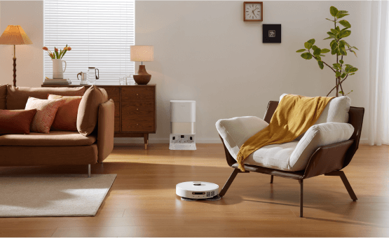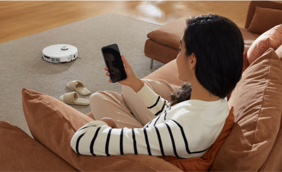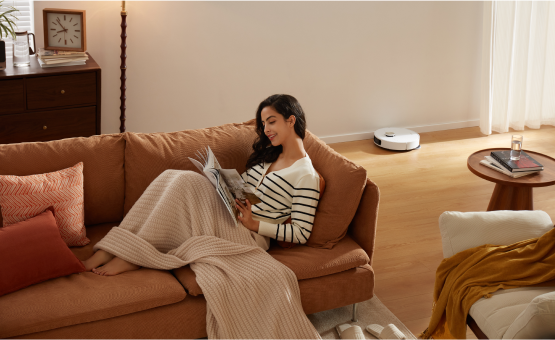 소파에 누워 빠르고 안정적인 진공 청소가 가능합니다. 강력한 소음 감소 시스템으로 자동 청소의 편리함을 누리십시오.