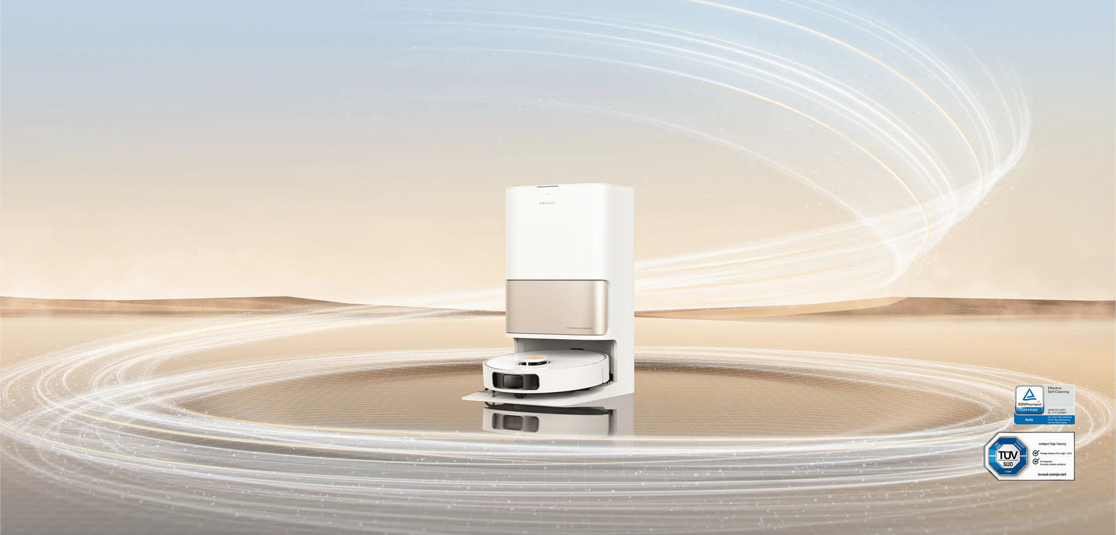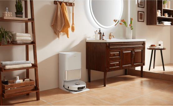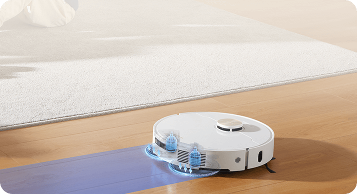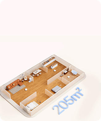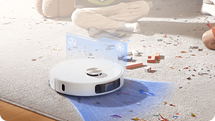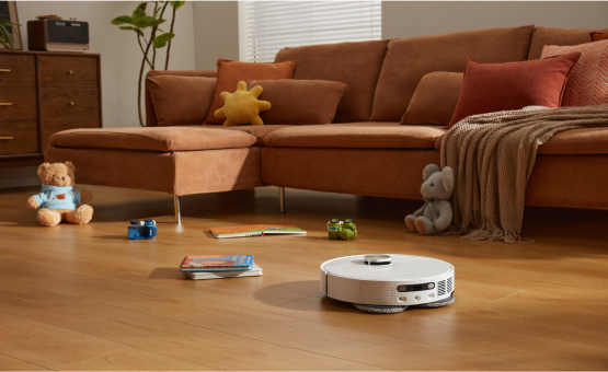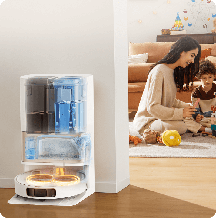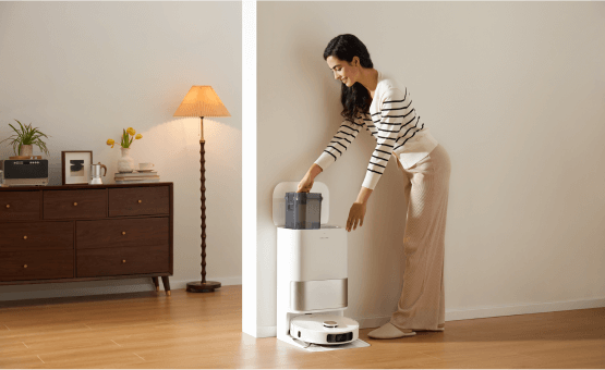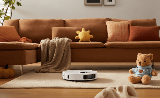 소파에 누워 빠르고 안정적인 진공 청소가 가능합니다. 강력한 소음 감소 시스템으로 자동 청소의 편리함을 누리십시오.