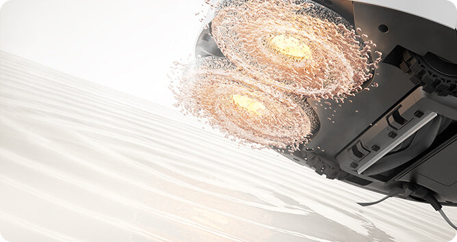 DuoScrub™ 물걸레 시스템은 회전식 및 가압 스크러빙을 사용하여 끈적이는 바닥의 먼지를 제거하여 지저분함을 막아줍니다.