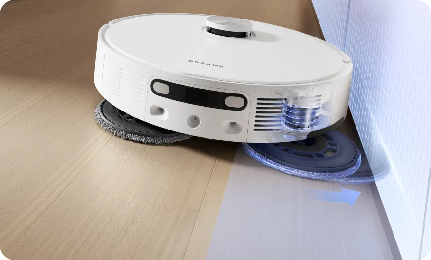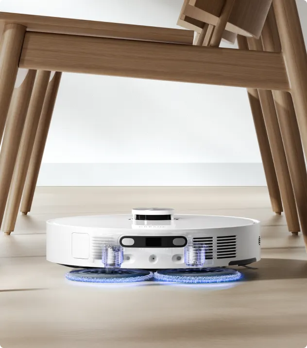 L10s Ultra Gen 2는 높이가 낮은 가구 및 최대 4cm 깊이*의 좁은 공간 밑에 숨겨진 이물질을 청소합니다. 가장자리 인식 및 조정식 걸레 연장관이 있어 테이블, 의자 및 굽도리널 주변에서 경로를 찾아 165%**의 효율로 가장자리를 청소합니다.