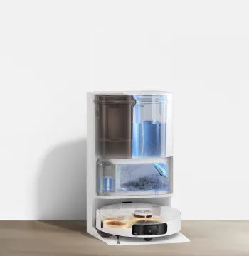 4.5L 깨끗한 물탱크에 스마트한 진공청소기가 자율적으로 걸레를 젖은 상태로 유지하기 위하여 물을 계속 다시 채웁니다.