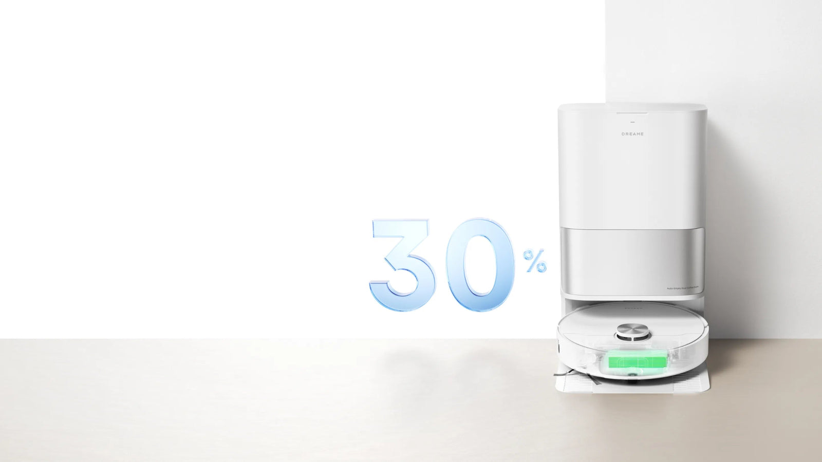 30% 더 빠른 충전: 이전 Dreame 로봇 모델과의 비교.